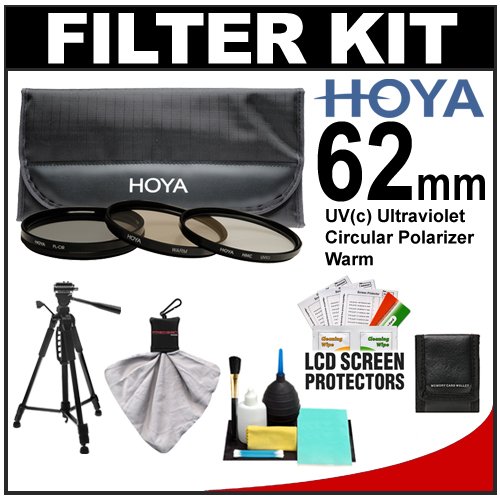 Hoya 62mm 3-Piece Introduction Filter Set (HMC UV Ultraviolet, Circular Polarizer & Warm) with Case + Tripod Kit for Canon, Nikon, Sony, Olympus & Pentax Lenses