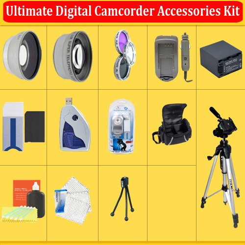 Huge Ultimate Accessory Kit for the Sony HDR-CX110, CX150, CX300, CX350V, XR150, XR350V HD Handycam Camcorder.the Kit Includes Lenses, Filters, 8 Gb Memory Stick, Extended Replacement Battery,Rapid Charger, Carrying Case, Tripod, Video Light Plus Much More!!