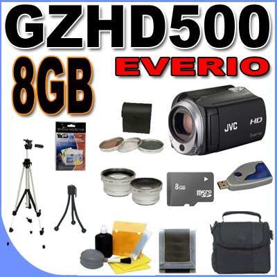 JVC GZ-HD500 80 GB High Definition HDD Camcorder (Black) BigVALUEInc Accessory Saver 8GB Filters/Lenses Bundle